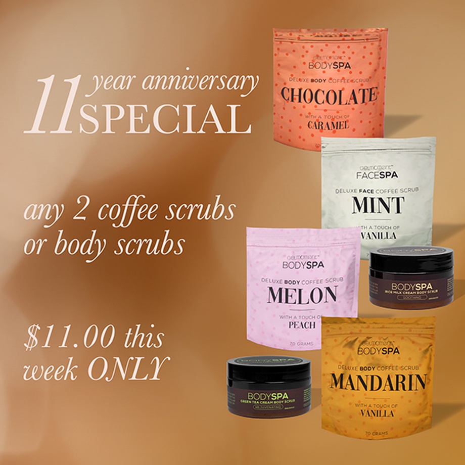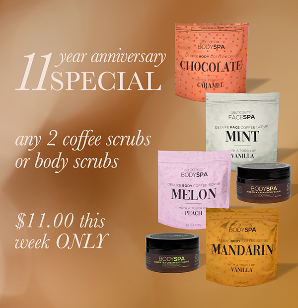 11-year anniversary SPECIAL - ANY 2 COFFEE SCRUBS or BODY SCRUBS