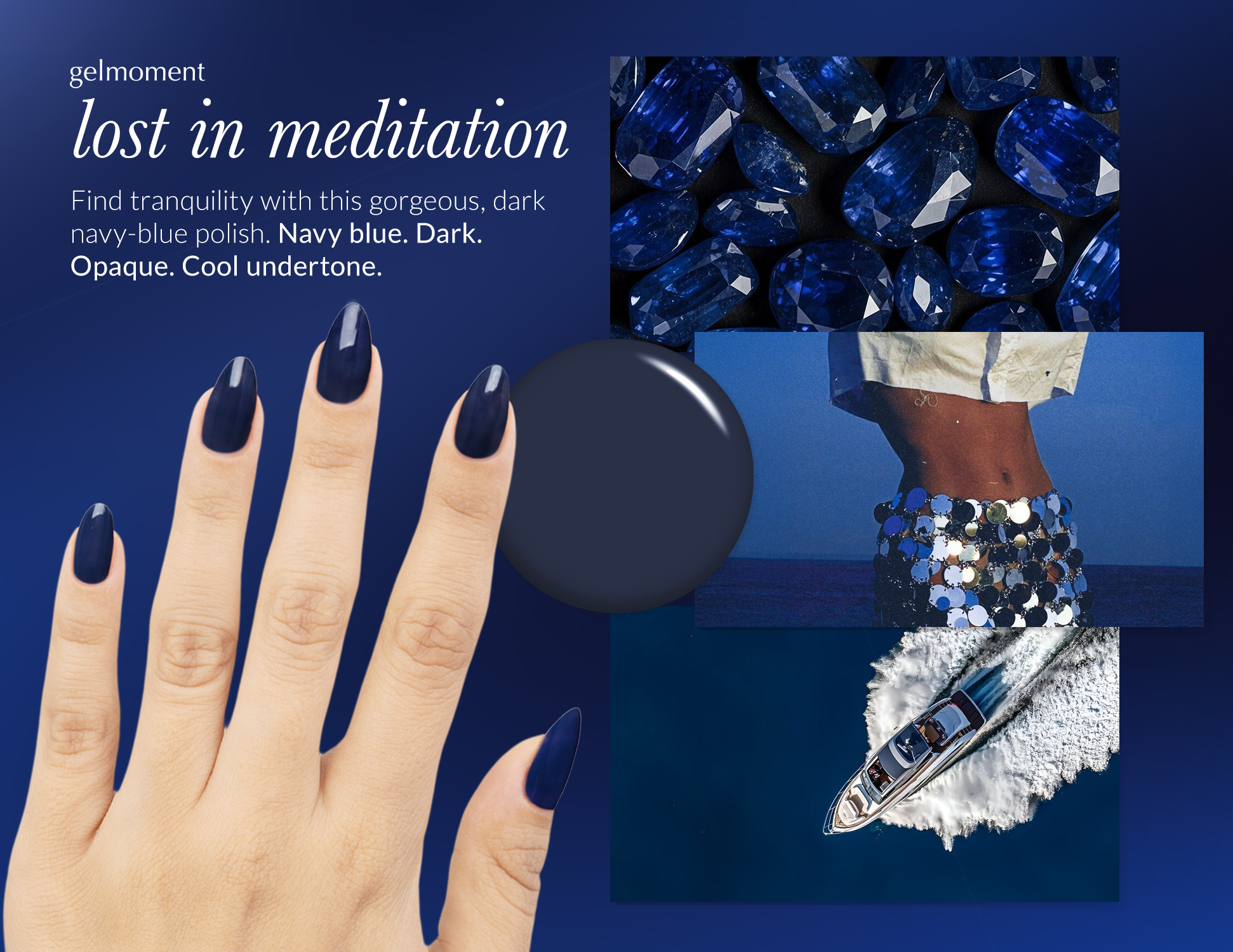 Find tranquility with this gorgeous, dark navy-blue polish.